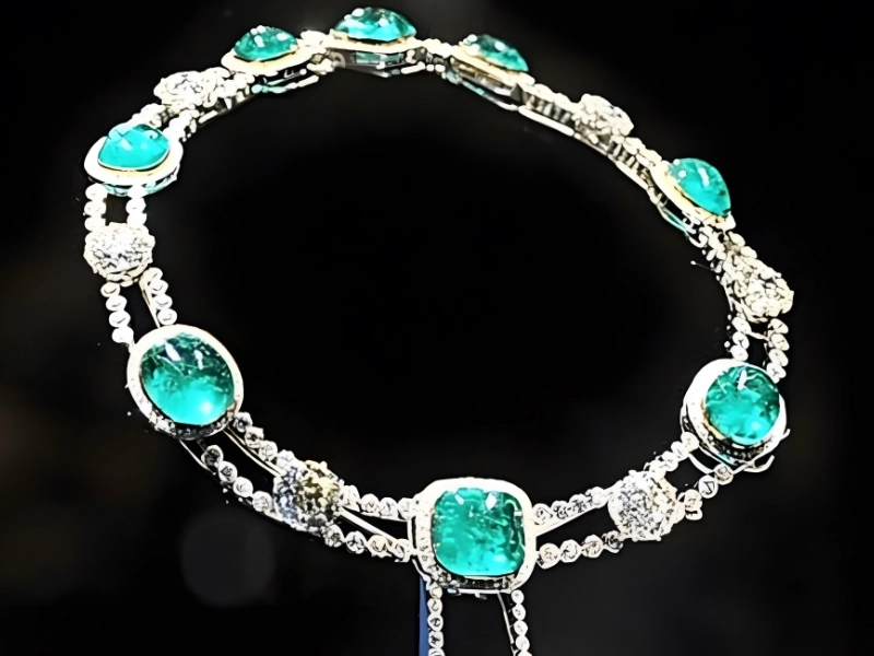 It has been owned since the early 20th century, and Queen Elizabeth II has worn it, proving its durability and ageless appeal. This necklace is a timeless representation of regal beauty because of the exceptional size and quality of the emeralds set against the contrasting diamonds.