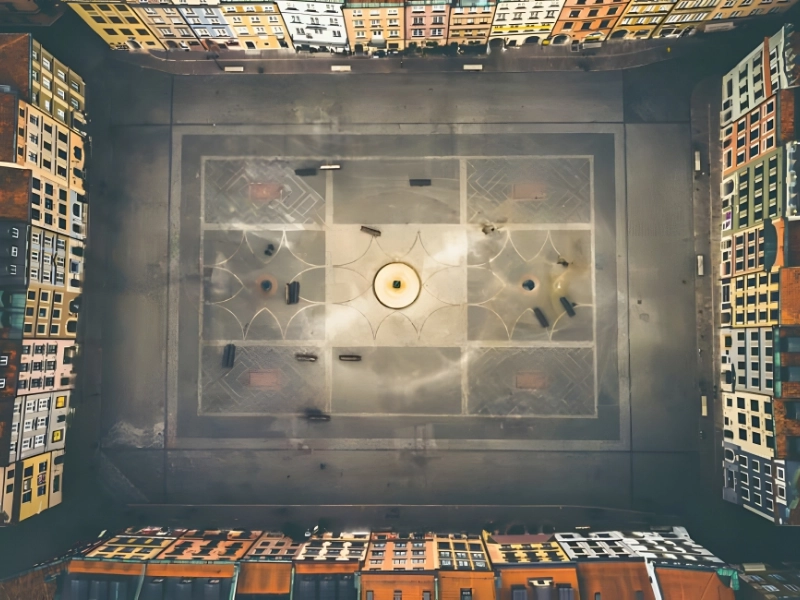 Warsaw, in Poland, was a bustling, colorful metropolis prior to the pandemic. In summer, it would be crowded with people and the umbrellas of surrounding restaurants. The enormous changes that the epidemic brought about in Warsaw were captured in Rafal Ganowski’s drone photo, “The Heart of Warsaw.”
