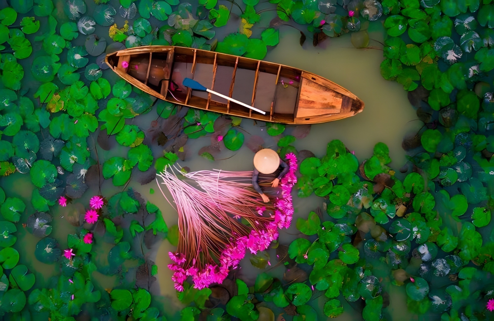 The lilies not only captivate tourists, they also are picked and harvested by locals to make additional income. The drone possibly used for a photo like this could have been the SwellPro Splash 3, a drone that is great for aquatic aerial photography.
