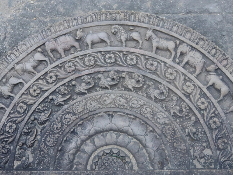 In Sri Lanka, during the Anuradhapura Period (400 B.C. to 1,000 A.D.), these Sandakada Pahana were discovered in temples. The homeowner claimed that when her family bought the house in 1950, the stone was included. The stone, which Sri Lanka has made (ineffective) suggestions it wants back, brought close to $50,000 at a 2013 Bonham’s auction.