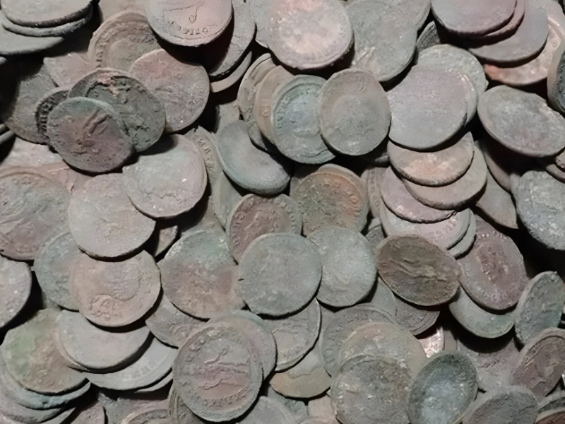 The aureus, a common gold coin, was used in the Roman Empire together with denari, or silver, and asses, or bronze. Hoards of these coins have been discovered over the ages by explorers, excavation firms, and fortunate individuals equipped with metal detectors. Such a find is the Lincolnshire Treasure, for instance.