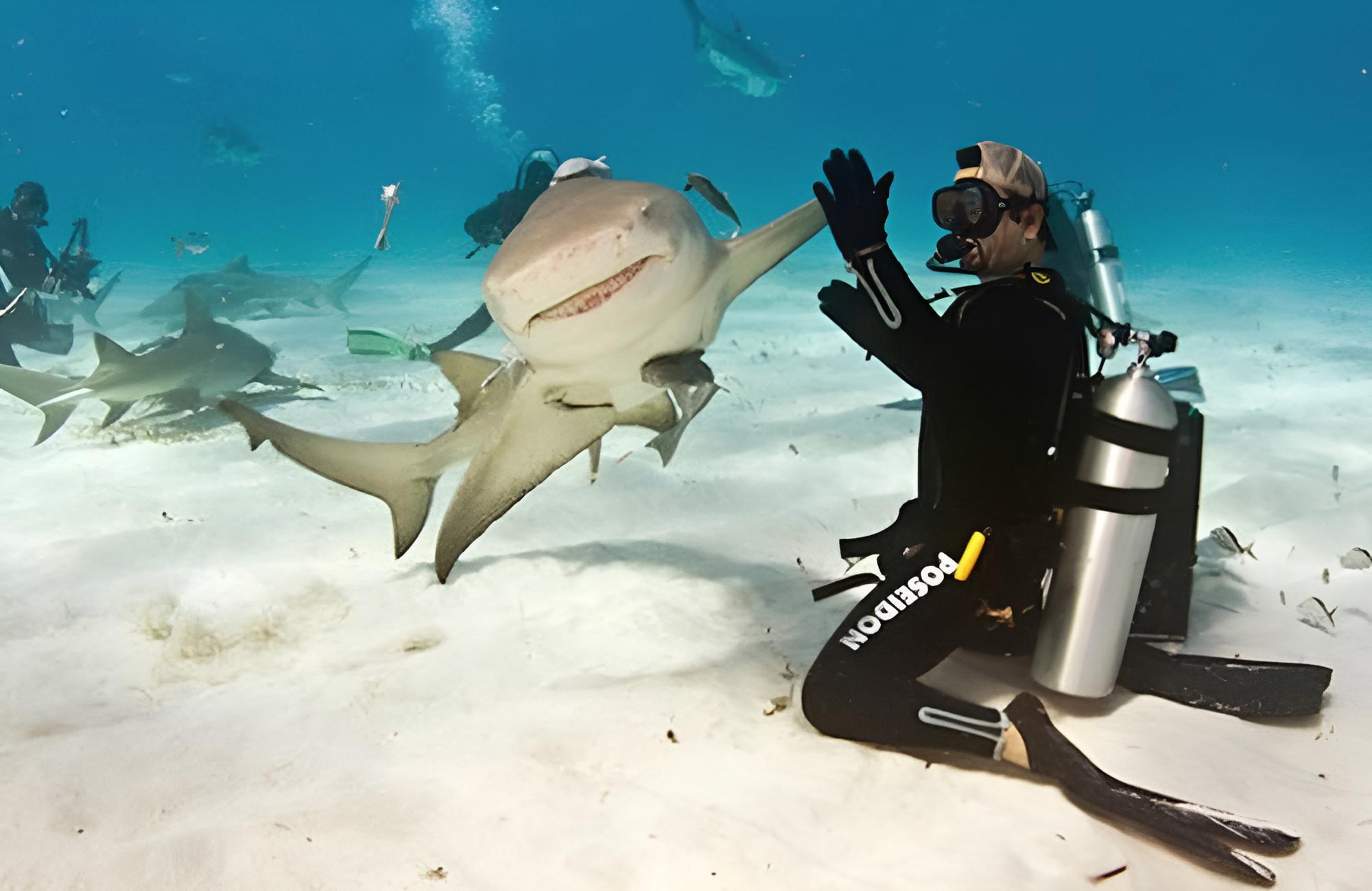 Once the thought of being eaten has subsided, it’s possible to enjoy the experience. These divers decided to make the most of their time below the waves by high-fiving some of the locals. Fortunately for their family album, professional deep-sea photographers were on site to capture every tubular moment.
