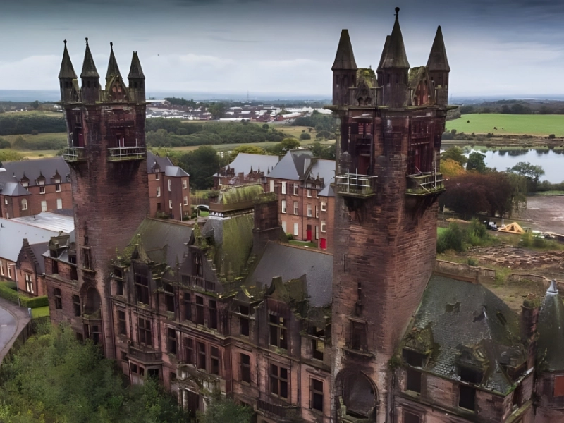 This massive structure was once a mental health center. Established in 1896, the Gartloch Hospital is situated in Glasgow, Scotland. Gartloch served as both a psychiatric unit and a tuberculosis rehabilitation facility. Its maximum number of beds, 830, was reached in 1904. Gartloch was transformed into an emergency hospital for injured Allies during World War II.