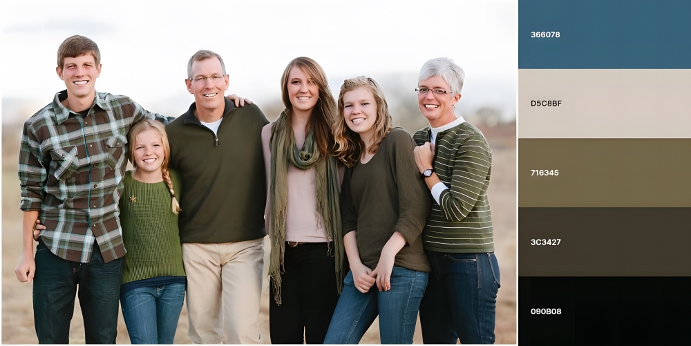 Make sure to consider your surroundings since the family photo color scheme you use should complement the setting.