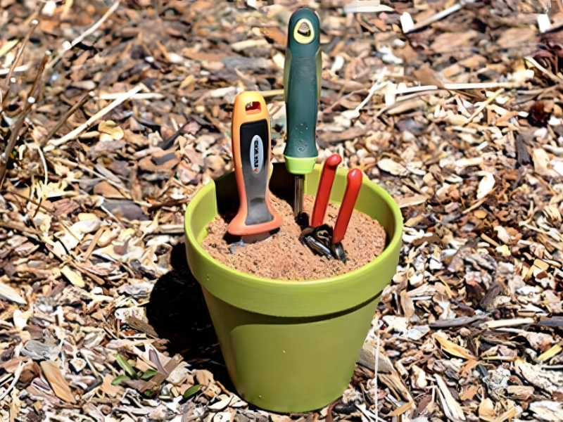Do you have an old, unused terracotta pot laying around? Use it as a DIY tool organizer and holder. It’s likely not a good idea to just throw your tools around the garden as that could cause them to rust or become unclean.