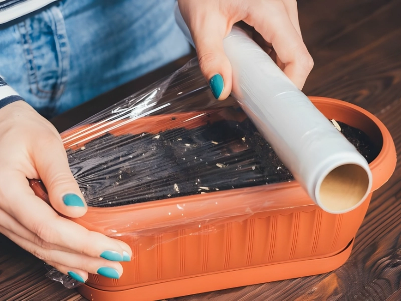 Use plastic wrap to cover the container or planter if you are planting plants that may require some TLC to get going. By doing this, the greenhouse effect will be strengthened, protecting these seedlings and promoting the fastest possible growth. Both Amazon and your neighborhood grocery shop carry this wrap.