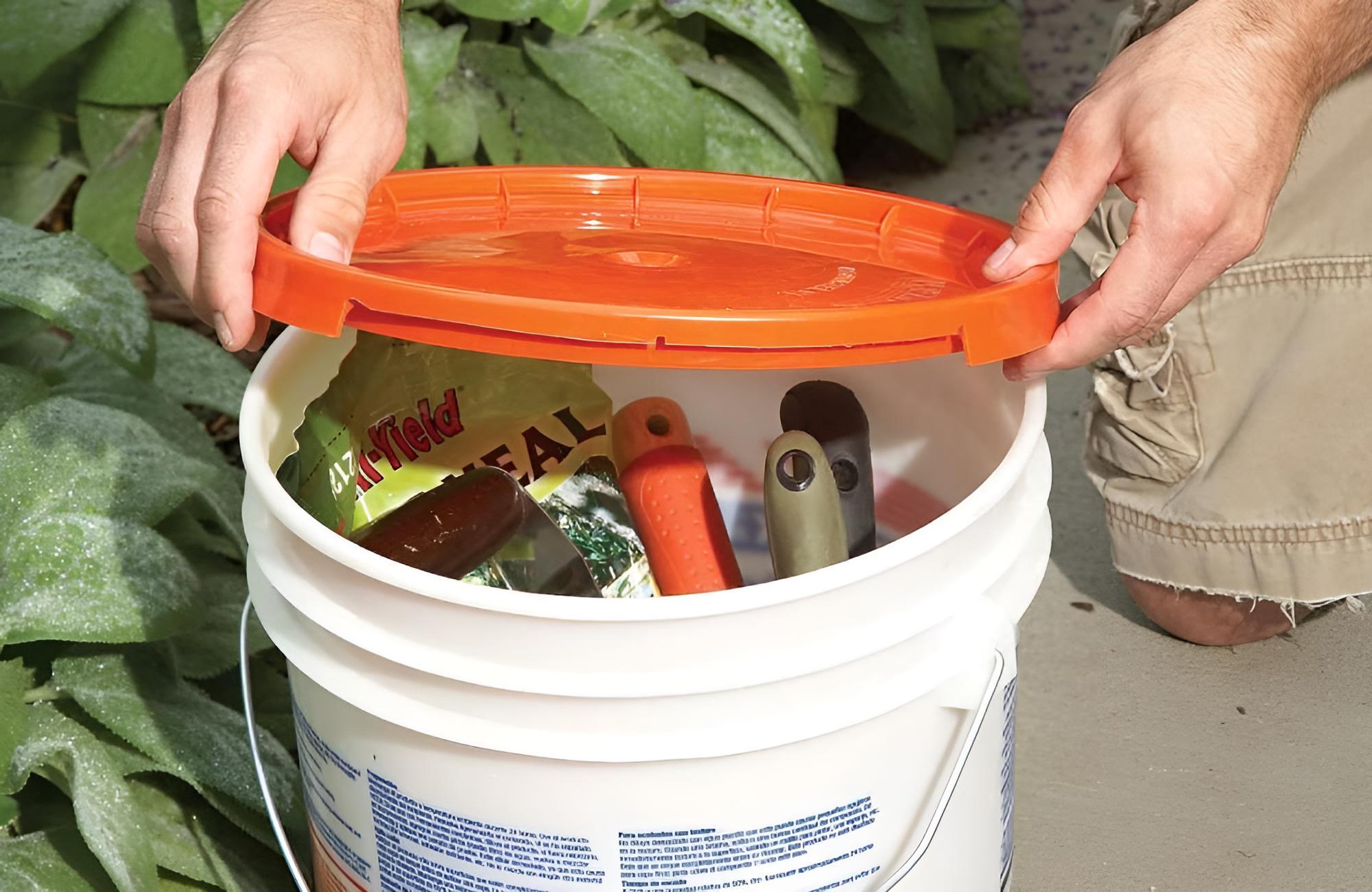 Additionally, this bucket acts as a portable stool when you need to do some pruning (or just take a rest). The lid can be a bit hard to pry off, but you can solve that issue by cutting off all but two of its plastic tabs. After you do that, the lid will pop on and off quickly and easily. You can find this bucket for just $5 at Home Depot.
