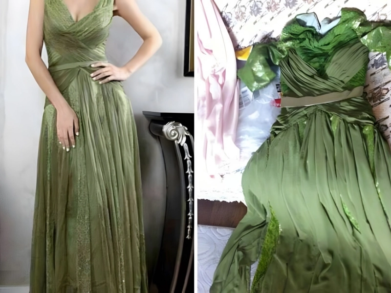 However, it’s generally best to purchase each one in person. For her wedding, this bride bought a gorgeous green-wrapped dress. What arrived in the mail appeared to be appropriate attire for a Renaissance Faire cosplayer. Two distinct, inexpensive types of fabric are employed. The wrap does not resemble the picture at all. This clothing should go in the trash.