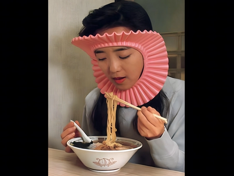 In Japan, wet dishes like noodles are frequently served at mealtimes; therefore, it’s hardly strange that this odd idea was created. Though the purpose of these wearable splash guards is to prevent annoying noodle juice from getting into your hair, they were never really taken off the shelf.