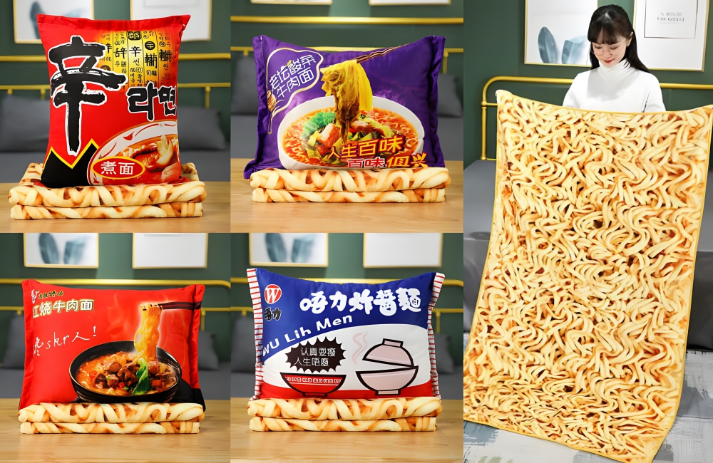 What it is: A cozy blanket and pillow combo that looks like delicious ramen