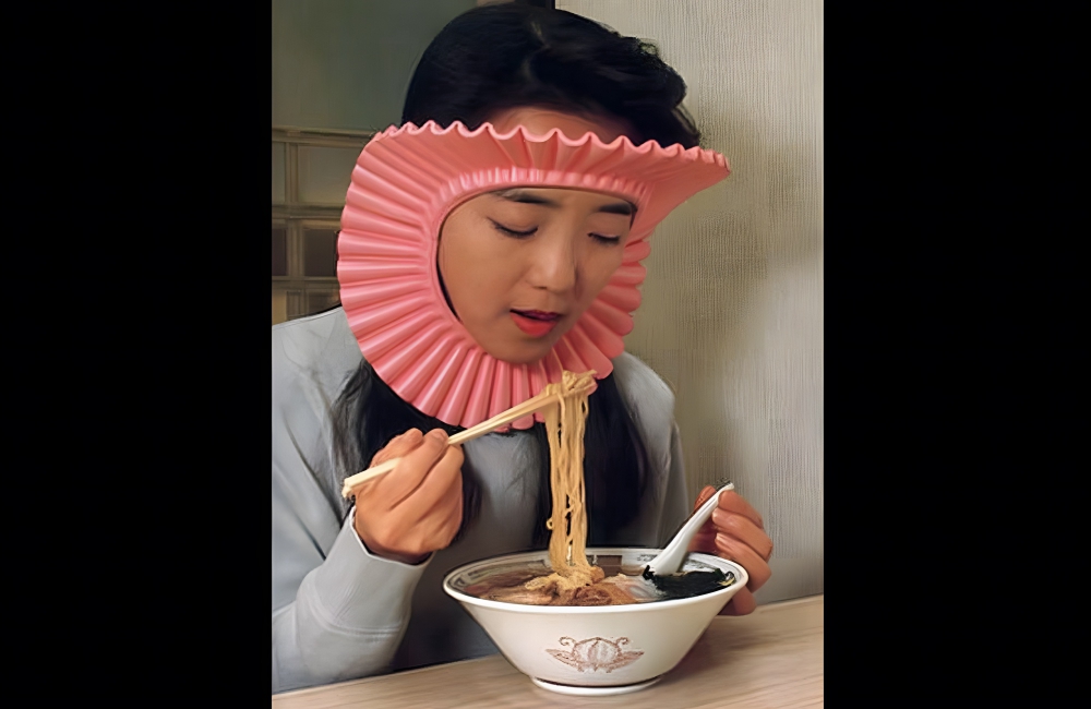 Noodles and other wet dishes are common at meal times in Japan, so it’s not surprising that someone came up with this quirky invention. While these wearable splash guards are designed to stop pesky noodle juice from getting into your hair, they never really became a commonly used item.