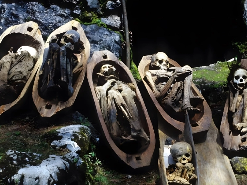 The eerie Kabayan Mummies are a testament to old burial customs that can be found in the Kabayan caverns of the Philippines. These exceptionally well-preserved mummies, which date back to the 1900s, are thought to be the product of natural mummification by the Ibaloi people. The dead were decorated with personal items, smoked over a fire, and sat in a fetal position.