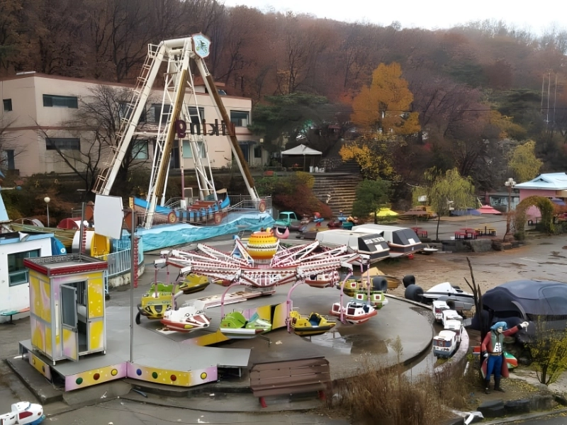 You can still enter the park and stroll around for a modest fee even if the rides have been abandoned. The site is often visited by photographers who come to capture images of the vividly colored attractions. It has also been featured in multiple Korean music videos.