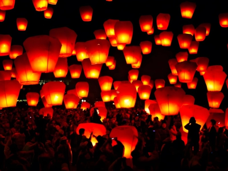 In addition to commemorating a full moon, the Ghost Festival—known as Teng Chieh in China—also signals the conclusion of the Chinese Lunar New Year. People erect vivid lantern displays of flashing lights outside their residences and places of business.