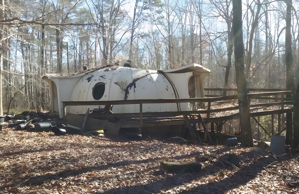 In the middle of the woods in Fox Chapel, North Carolina, there is an abandoned dome house that is in bad condition. It is built in a similar style to the architectural fad from the sixties known as “Futuro Houses.” Designed by a Finnish architect, these prefabricated, dome-shaped homes sold like hotcakes after their ’68 debut.