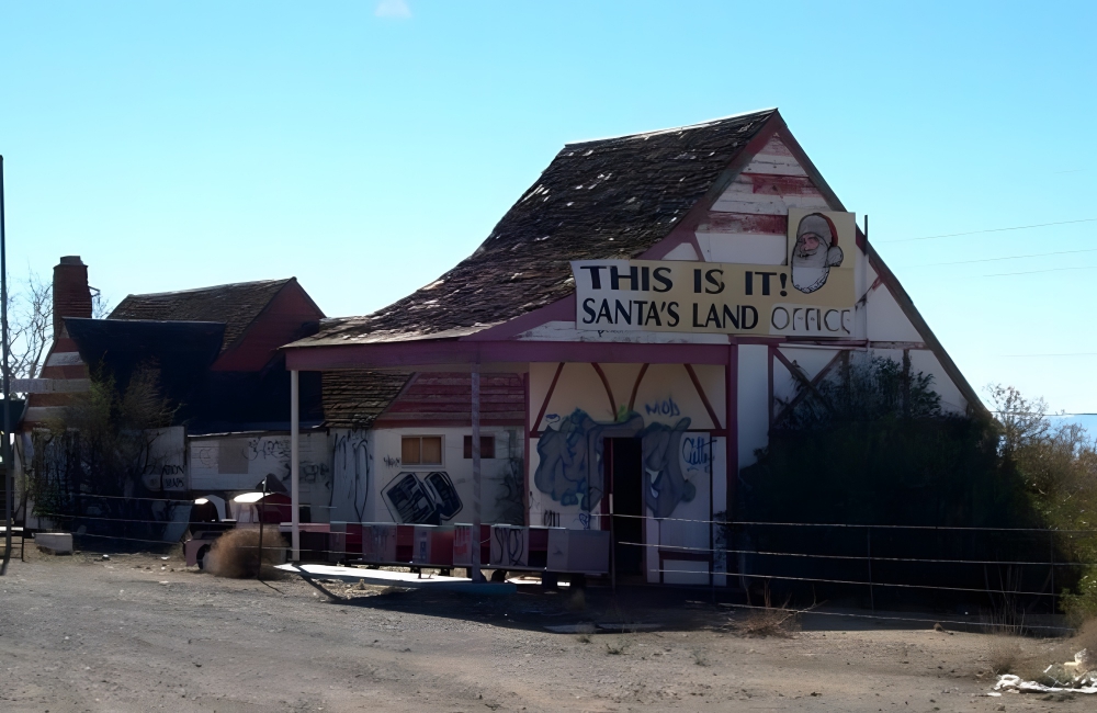 Santa Claus was founded as the North Pole in the desert, and there were rides and other Christmas-themed buildings. For a while, Santa Claus was a popular tourist attraction, attracting even celebrities. But, Santa Claus started to struggle because no one bought land there, and Talbot sold the town in 1949 after making very little profits. The land has changed hands over the years, with the last sale price record at $8,000 in 2021.