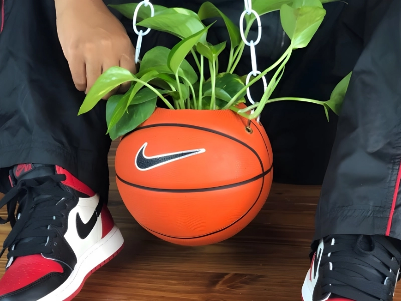 Use a basketball as a planter on YouTube or in real life.