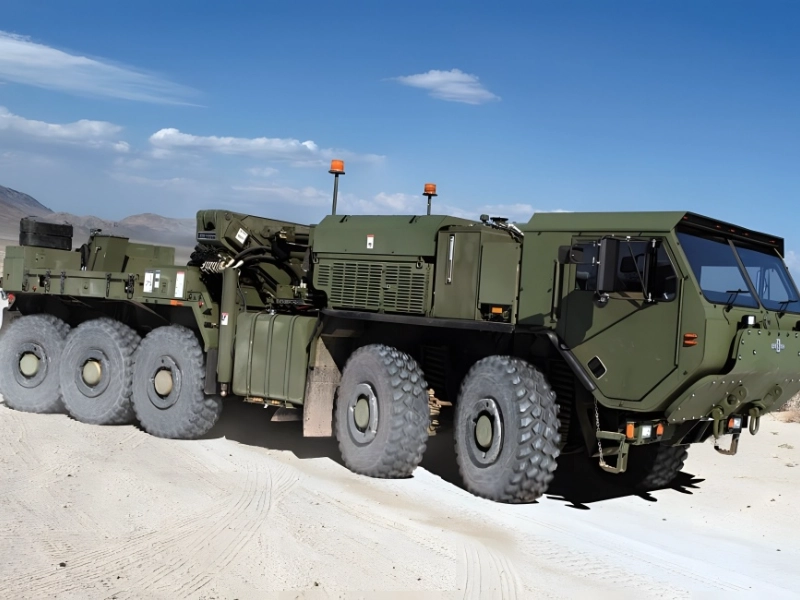 Oshkosh manufactures the LVSR Wrecker, which is designed for heavy-duty vehicle recovery from mud, snow, sand, and pretty much any other material. The Wrecker can go across any terrain because of its versatility and mobility. It belongs to the same family as tractor trucks, freight trucks, and wreckers—LSVR.