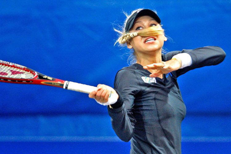 It feels like she’s about to hit her opponent with the racket.