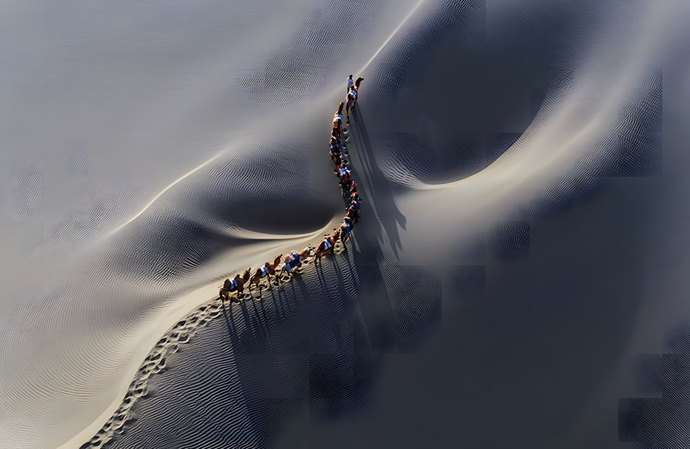 Hanbing Wang took this drone photo, which he titled, “Exploration” for the SkyPixel competition a few years ago. Needless to say, this photo was a winner, as it captures the slow, methodical path of Bactrian camels walking through the Taklamakan desert in China. The photo was perfectly timed, appearing to form a near-exact pattern of camel footsteps.