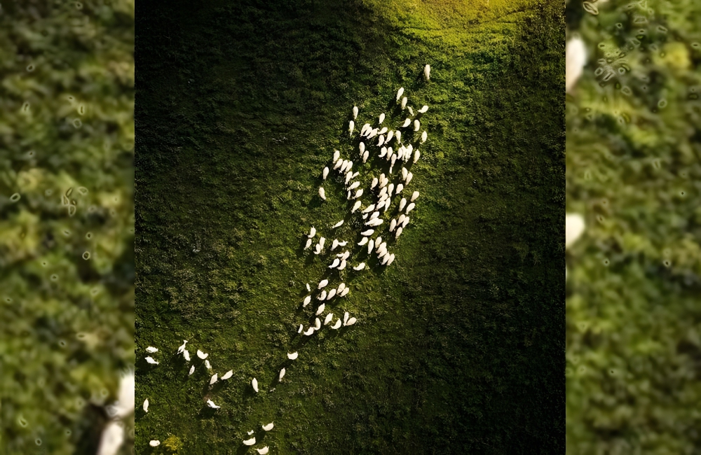 Sheep are very gregarious animals, and they travel in herds not just for protection against predators, but because they’re social butterflies. The drone used might have been a DJI Mavic 2 Zoom. The Mavic 2 has a high-quality camera for taking such a clear photo. It is also a quiet drone, so the sheep wouldn’t get scared and bolt if they heard it buzzing above them.