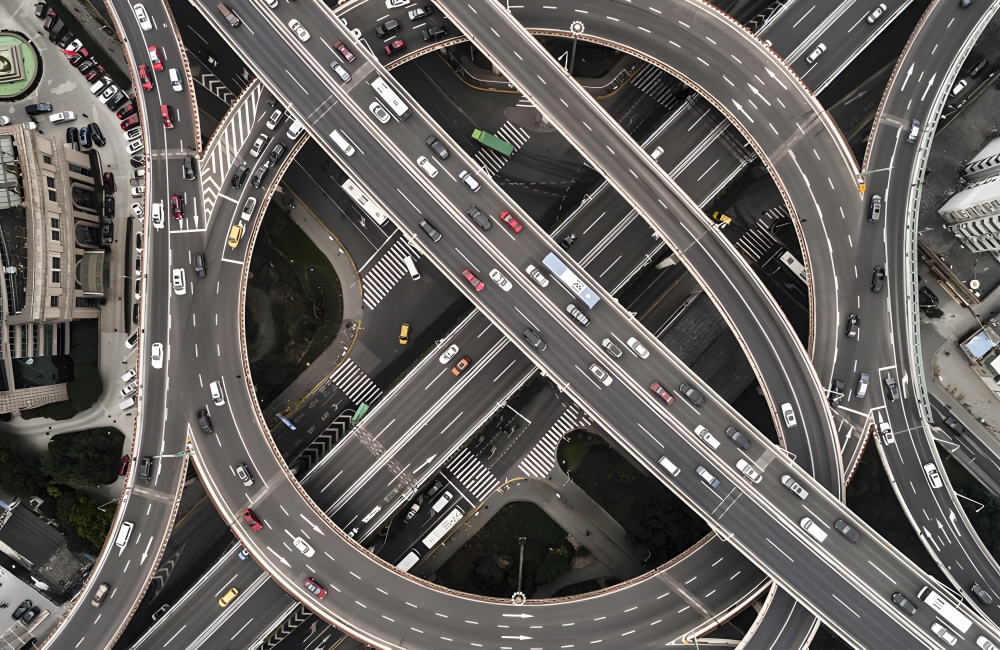 User @CaptainWang took this image of a highway overpass in an unnamed city. Though they took the aerial photograph on a cloudy day, it is still a bright, clear view of the puzzle-like formations that our highways and roadways often take. The possible drone used is unlisted.