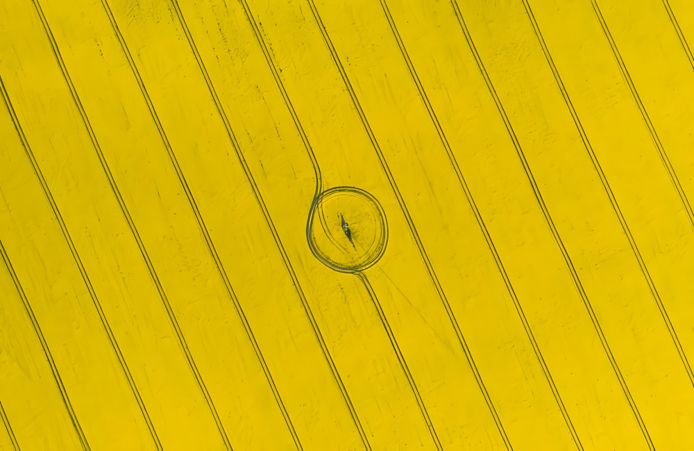 If you weren’t looking closely, you likely wouldn’t be able to tell what you were seeing when you look at this aerial photograph. The photo is of a yellow, blooming rapeseed field. The Brassica subspecies is known for its vivid yellow hue, and it is cultivated because its oil contains a lot of erucic acids. Basically, rapeseed is used to make canola oil, which is used in just about everything.