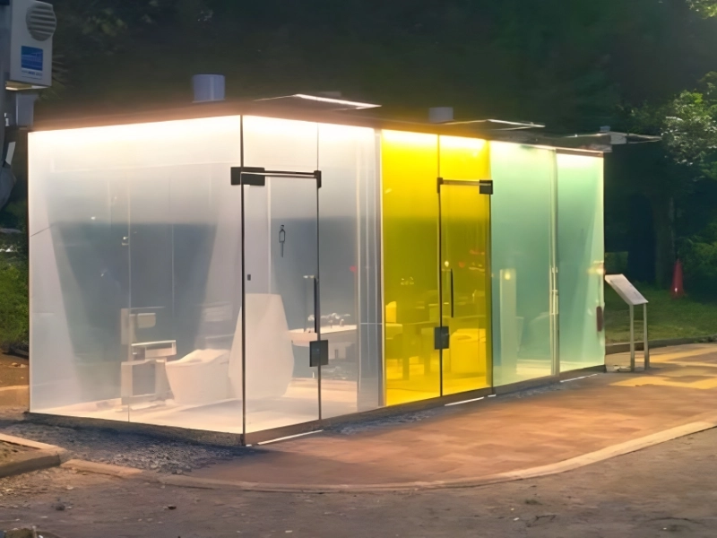 What it is: When the door is closed, transparent public restrooms become opaque.