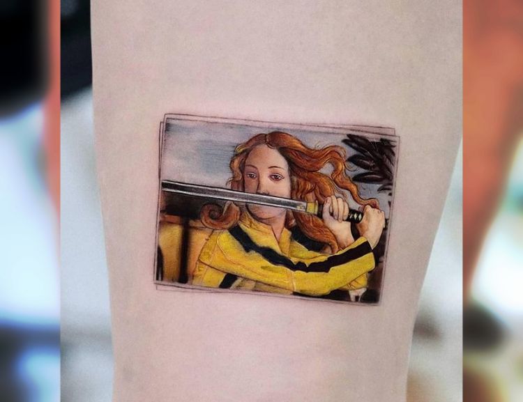 The girl from the painting “The Birth of Venus” dressed in the attire of the heroine from the movie “Kill Bill”.