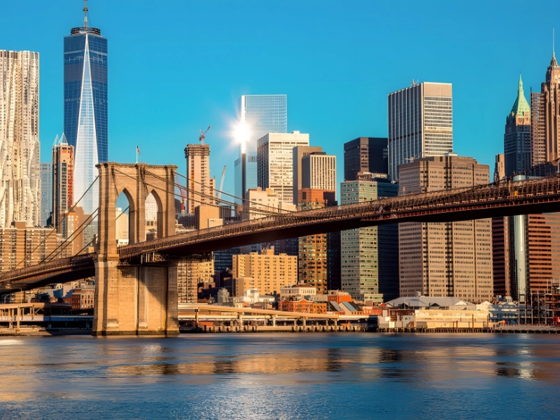 Situated in the Brooklyn borough of New York City, the Brooklyn Bridge is a hybrid suspension bridge with cable stays. Brooklyn and Manhattan are connected by the East River Bridge. After years of building, it was finally opened in 1883. The Roebling family designed the bridge, and it took thirteen years to build.