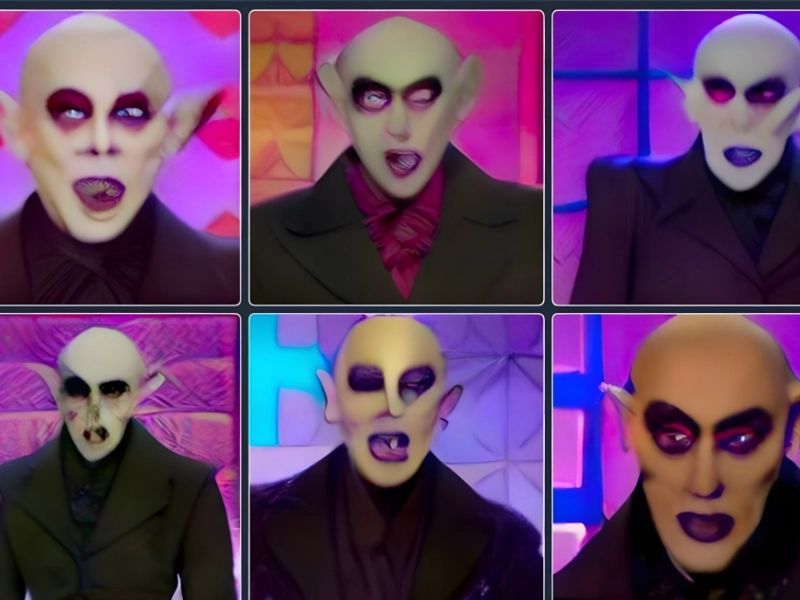 Wer hat gesagt, dass die beiden nicht koexistieren könnten? Wir werden Zeuge, wie Nosferatu auf RPD sein abscheuliches, deformiertes Vampirgesicht mit sehr starkem Make-up nachbildet, mit freundlicher Genehmigung von DALL-E, einem bekannten Schöpfer äußerst seltsamer KI-Fotos.