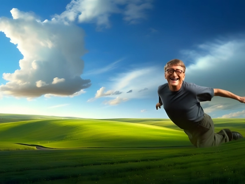 Bill Gates spielt mit dem Hintergrund von Windows XP herum https://boredpanda/Pinterest