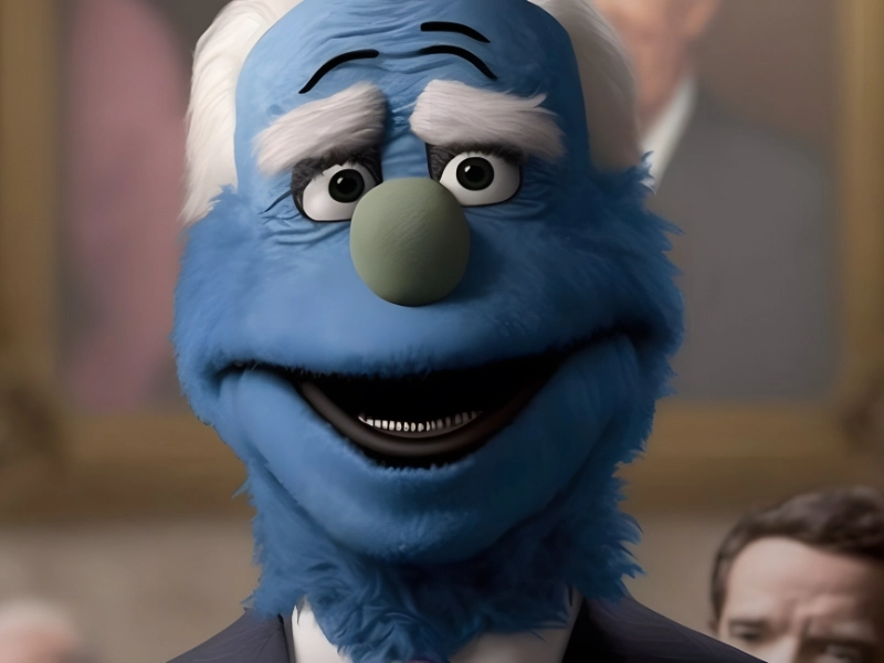 Da Mitch McConnell anwesend ist, wäre es angebracht, auch Joe Biden einzubeziehen. Joe Biden erscheint auf diesem Foto als Marionette und die DALL-E-Inszenierung scheint realistisch zu sein. Ja, der blaue Muppet hat immer noch seine Augenbrauen und Haare.