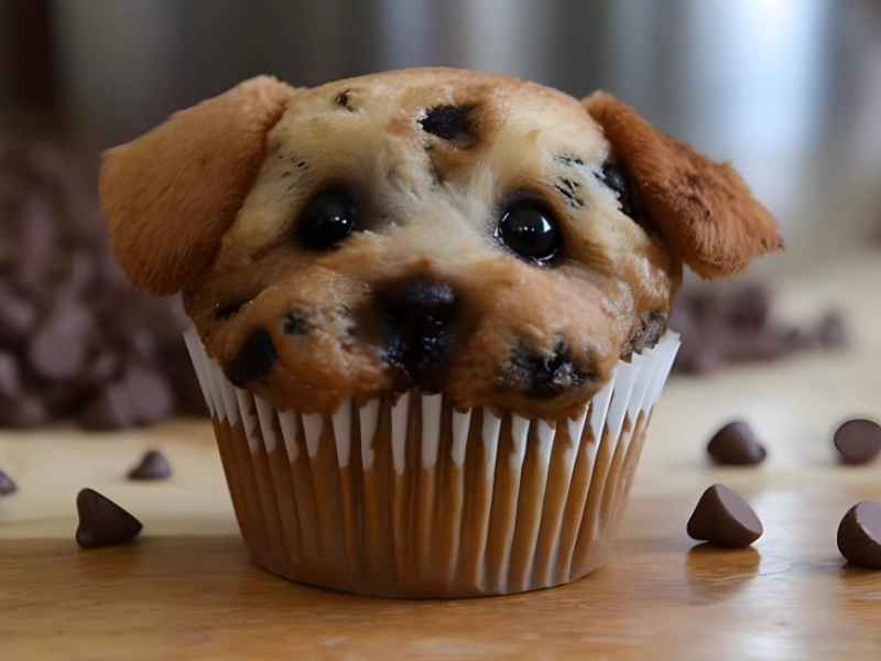 So passen Welpen und Muffins perfekt zusammen. Muffins sind lecker und Hunde sind süß, und zusammen ergeben sie eine faszinierende Kombination. Obwohl dieses Foto vom Macher als Fehler eingestuft wurde, hat es eine unerwartet charmante Qualität.