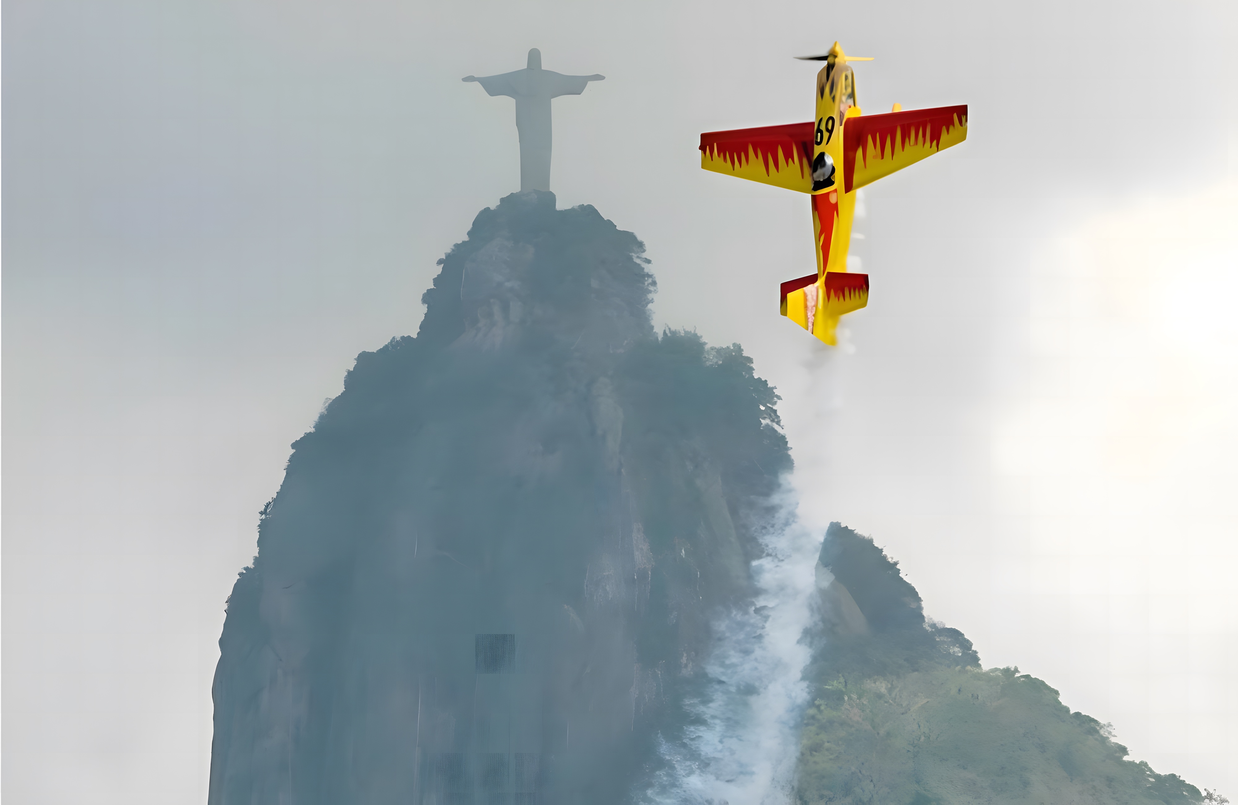 This statue, titled Christ the Redeemer, stands 125 feet tall and is located in Rio de Janeiro, Brazil. This photographer happened to catch a plane on an upward swing right next to the statue, making it look as though the religious icon and aircraft are mirroring each other.