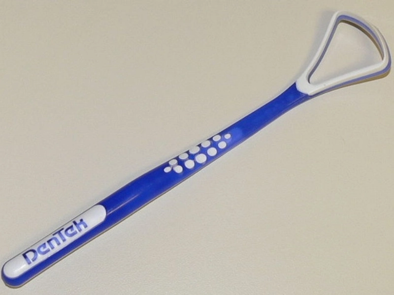 Benutze einen Zungenschaber.