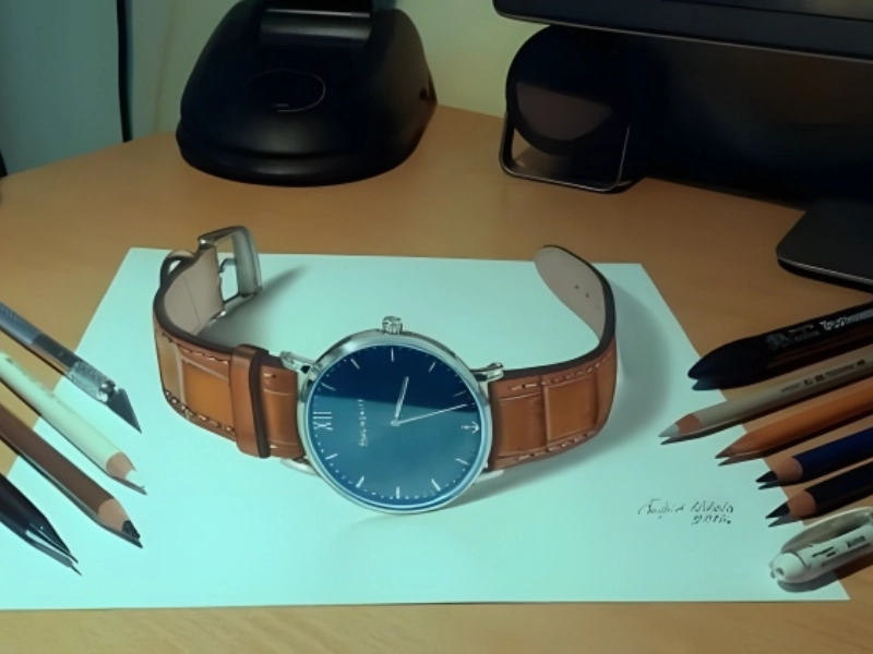 The artist has created a wristwatch illustration in this amazing display of artistic ability that approaches, maybe even exceeds, images of real-time clocks. From the exact representation of each individual watch component to the subtle play of light across the metallic surfaces, this drawing achieves nothing less than amazing degree of detail. The artist has brilliantly caught the several textures and materials usually present in high-end timepieces: the glitter of polished steel, the subdued sheen of brushed metal, the crystal-clear watch face, and the minute mechanical intricacies inside. Many real-time watches would find it difficult to equal the extraordinary patience and accuracy shown in the attention to the smallest details—such as the minute markings, the smooth sweep of the second hand, and even the company logo. The three-dimensional appearance attained by deliberate shadowing and highlighting produces such a convincing depth that viewers could be tempted to reach out and change the time.