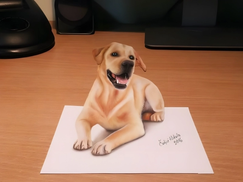 This touching picture shows a dog that not only has the physical characteristics but also the charming nature of man’s best friend in a quite lifelike manner. The artist has shown remarkable ability in capturing the several textures of fur, so producing an almost physical feel that invites viewers to reach out and stroke the shown dog. Perfect capture of the dog’s posture suggests a moment of focused contact with its audience, complete with that typical head tilt canines usually exhibit. Particularly remarkable are the eyes, which seem to embody the soul of a real animal because to their depth and expressiveness. The fur work has amazing quality; every strand seems to catch the light differently, producing a natural and dynamic look. The remark regarding the desire for the drawing to come to life strikes a deep resonance since the artist has been able to give the image virtually life on the page with personality and appeal.