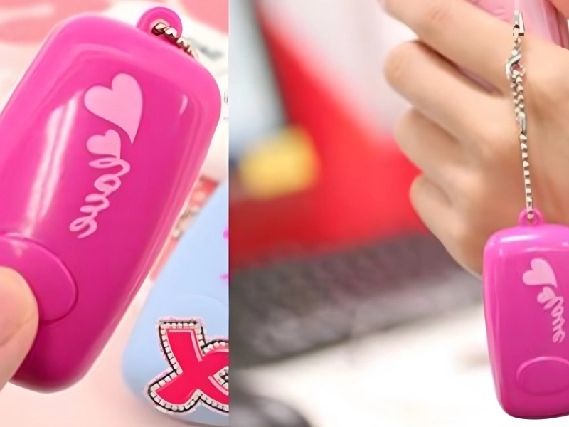 The gadget is basically a tiny speaker that, in an effort to reduce water waste, plays sounds like running or flushing water. It has a ribbon or forest design, comes in pink, and runs on batteries.
