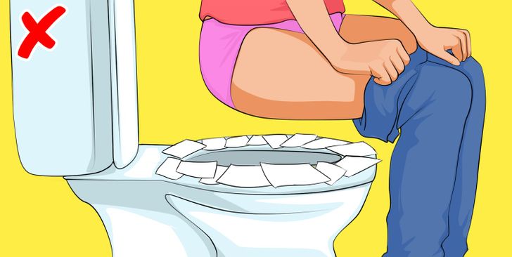 Humanity didn’t have actual toilets for a very long time throughout history. And only recently did people design the toilets that we know and use today. However, the position that we take when sitting on such a toilet is not natural. The 90° position (on the left) causes tension and strain and can lead to constipation and hemorrhoids. And the 35° position (on the right) is natural where everything can take its natural course. So, because in public toilets we usually have to rush, it’s better to sit in the 35° position to avoid any injuries. However, you should remember that not all public toilets allow visitors to stand on seats. So, if you are in such a toilet, just don’t touch the seat to avoid the bacteria.