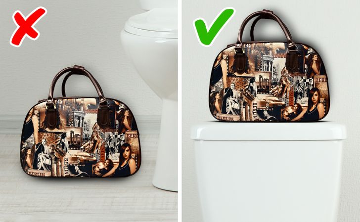 If you need to put down your bag or your things, pick the safest place — outside the toilet. But if you have no choice and nobody to hold your bag, don’t put your things on the floor. The safest place is the toilet tank.