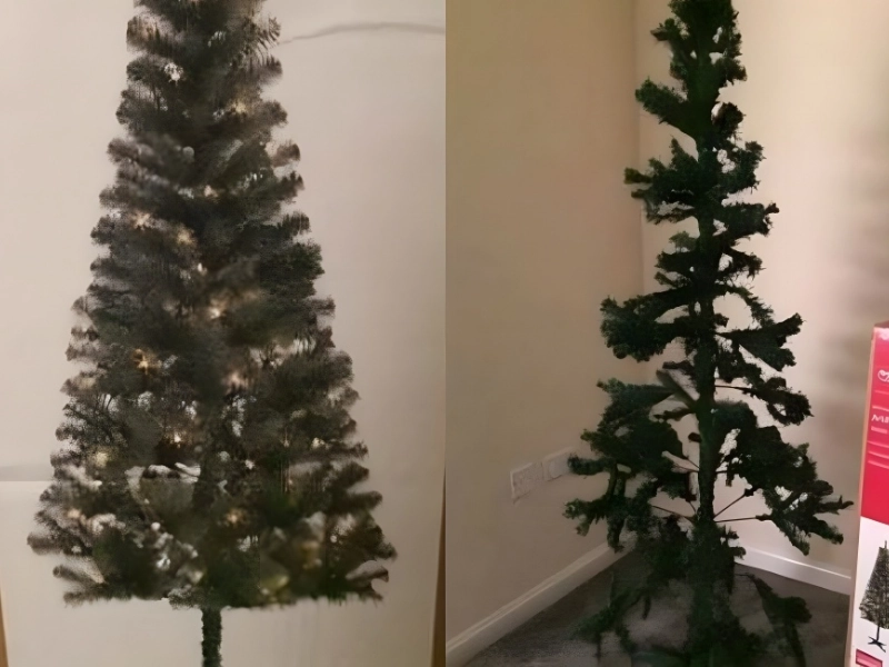 One mother was “gutted,” according to the UK news site Metro, after she bought a Christmas tree to adorn her house and discovered that it didn’t look anything like it did on the package. The $23 package had a whole Christmas tree; however, the tree that was inside the box was rather sparse.