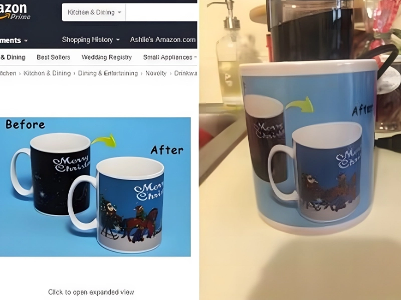 This is essentially the “Light Bulb Color-Changing Mug” crisis from a few pictures ago on a holiday scale. “Matt,” a cautious customer, bought this mug for his spouse. Instead of the black mug turning into a lovely Christmas scene, as he had anticipated, it remained the same. Rather, the demo image was printed onto the cup by the seller.