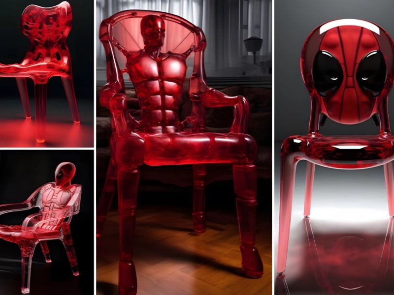 Seeing his well-known Marvel character, the Merc with a Mouth, transformed into an acrylic chair would surely make Ryan Reynolds smile. Not only does the chair include the Merc’s renowned red-and-black mask, but it also sports abs.