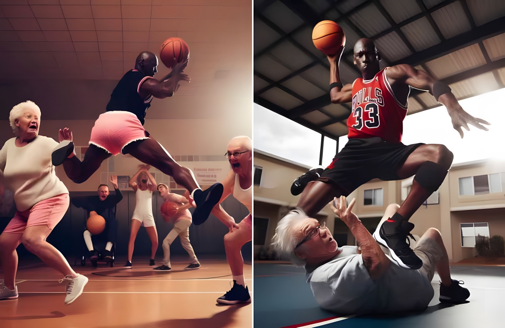 He’s sixty now, and this AI series takes a look at what could happen if he went to an aging facility and absolutely dominated the other residents in a game of basketball. None of them stand a chance against the former Bulls king and his wicked fadeaways.