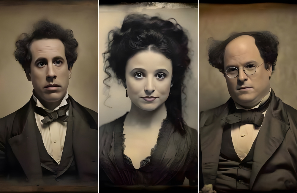 But, what if Seinfeld hadn’t taken place in the inimitable 1990s, but at the turn of the century. That’s what this bizarre AI photo series by Joshua Mario James considers and wow, is it wacky. Steam trains, women’s suffrage, industrialization, and more would’ve all been the topics bandied about by Jerry and his pals.