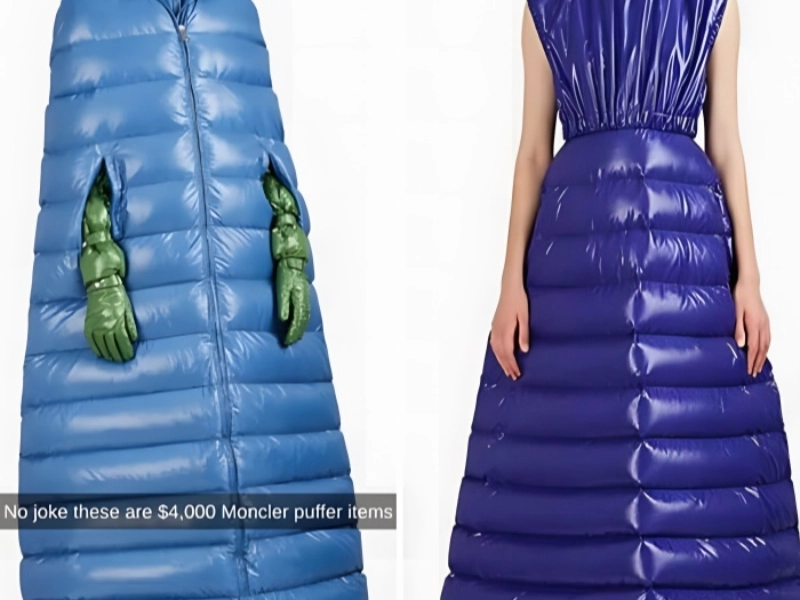 One of her companions so most likely said: “Hey, we’re missing a sleeping bag for the camping trip.” She then seemed to be saying: “No trouble. I have you people covered here. It’s tough to overlook the remarkable connection to outdoor gear; this outfit resembles something you would find in a REI catalogue more than on a fashion runway. The obvious sleeping bag look created by the quilted material and fluffy silhouette begs issues about the boundaries separating high fashion from practical outdoor clothing. See; she is the sleeping bag. Try to understand. Alright, maybe that’s just a bit too harsh, but we can’t lie: this attire really resembles more of camping gear than a frock. The designer seems to have stretched the idea of functional fashion to an extreme nobody requested. Apologetic to whoever created it; but, a rework could be needed. Although we value original ideas for fashion, there is a thin line separating creative from impractical. Although it might seem cruel to sink on someone’s works like this, occasionally what individuals truly need is a little bit of constructive criticism, and we would be more than pleased to provide. With some work, this idea might develop into something that more precisely balances the outdoor-inspired design it’s obviously going for with style.