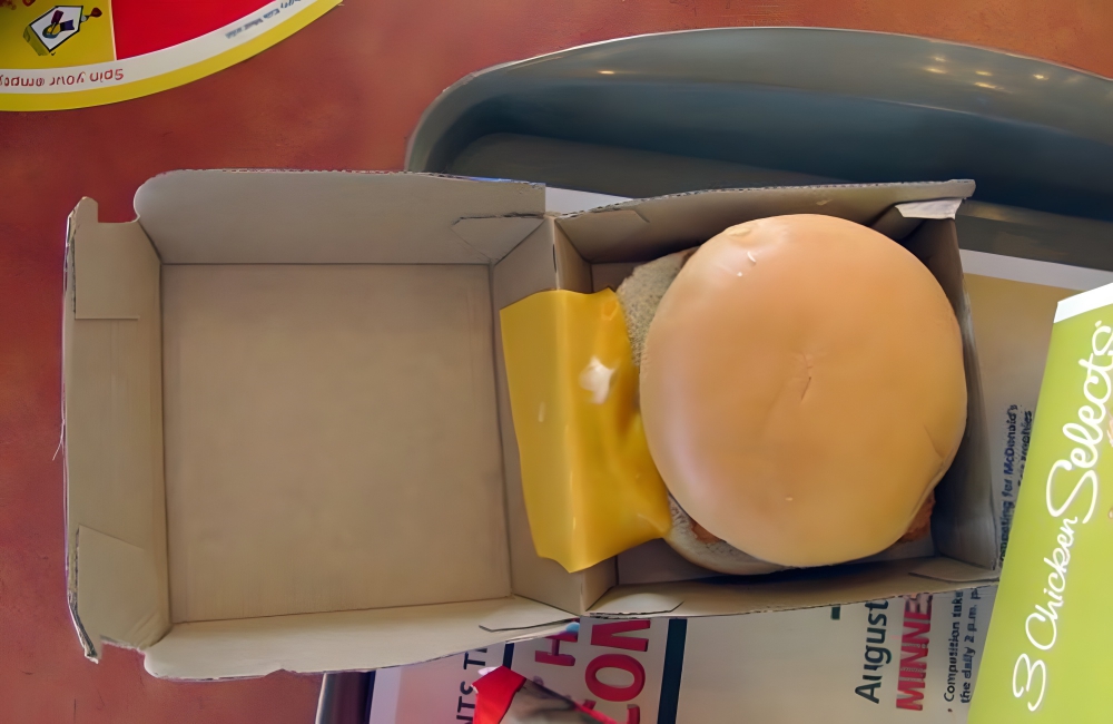 Another failed McDonald’s attempt is this creation. Though, to be fair, if the customer asked for the cheese on the side, this makes total sense. One McDonald’s customer in the UK placed their order and got cheese completely off the patty—instead, it melted into the cardboard.