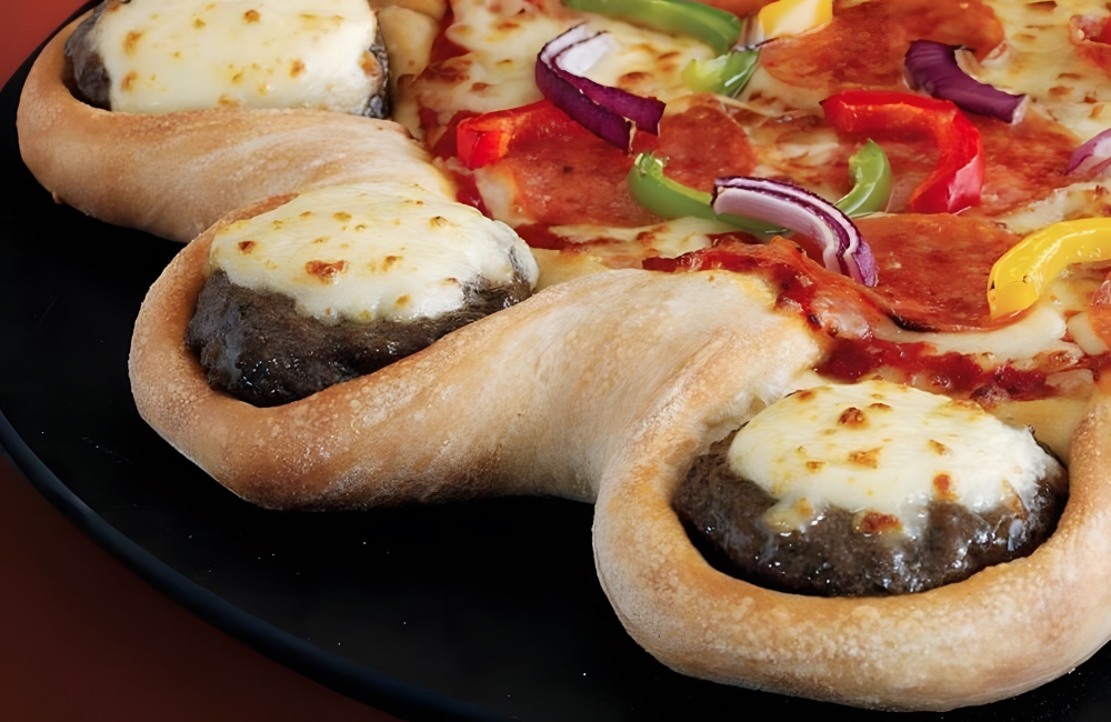 It almost looks like Pizza Hut tried to take the concept of a cheeseburger pizza (which is also an acquired taste) and turn it into, well, crust. Each segment of crust contains a mini, cheese-topped cheeseburger. Out of all of Pizza Hut’s wacky ideas, this one might take the cake for the weirdest crust offering.