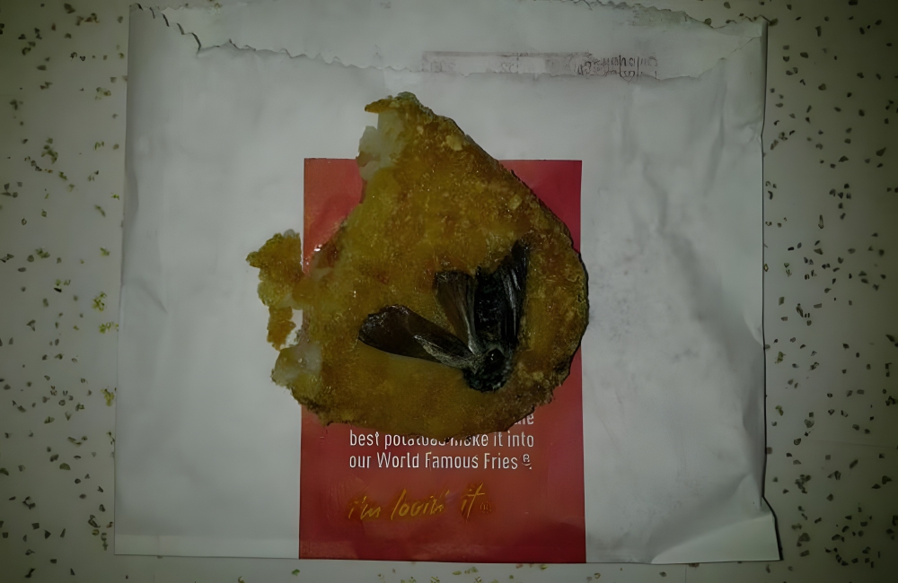 They found a huge winged cockroach smashed into their hash brown. And the worst part is, they found it after taking several bites. They must have not taken the hash brown all the way out of the packaging before taking a bite. We bet they’ll think twice about that next time—or perhaps skip fast food altogether.